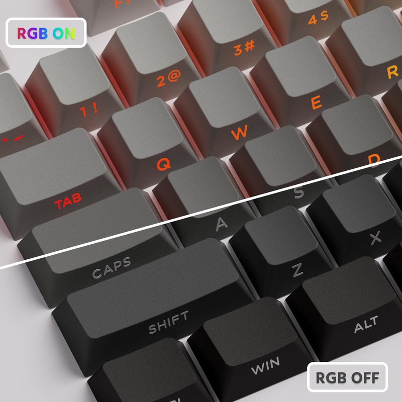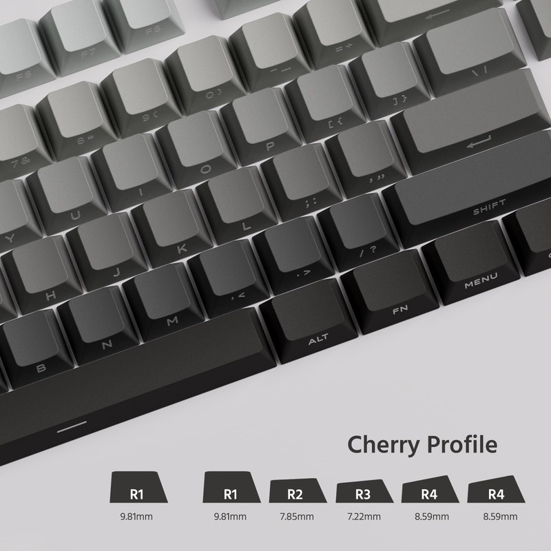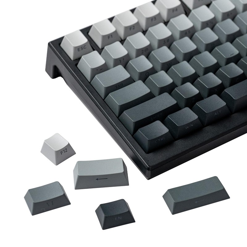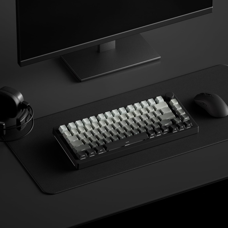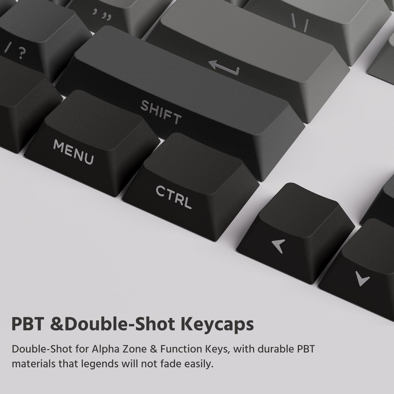- Gray-to-Black Gradient Design – Smooth color transition from light gray to dark black on keycaps, achieved through PBT double-shot molding. Gradient keycap provides a subtle, professional aesthetic for minimalist setups