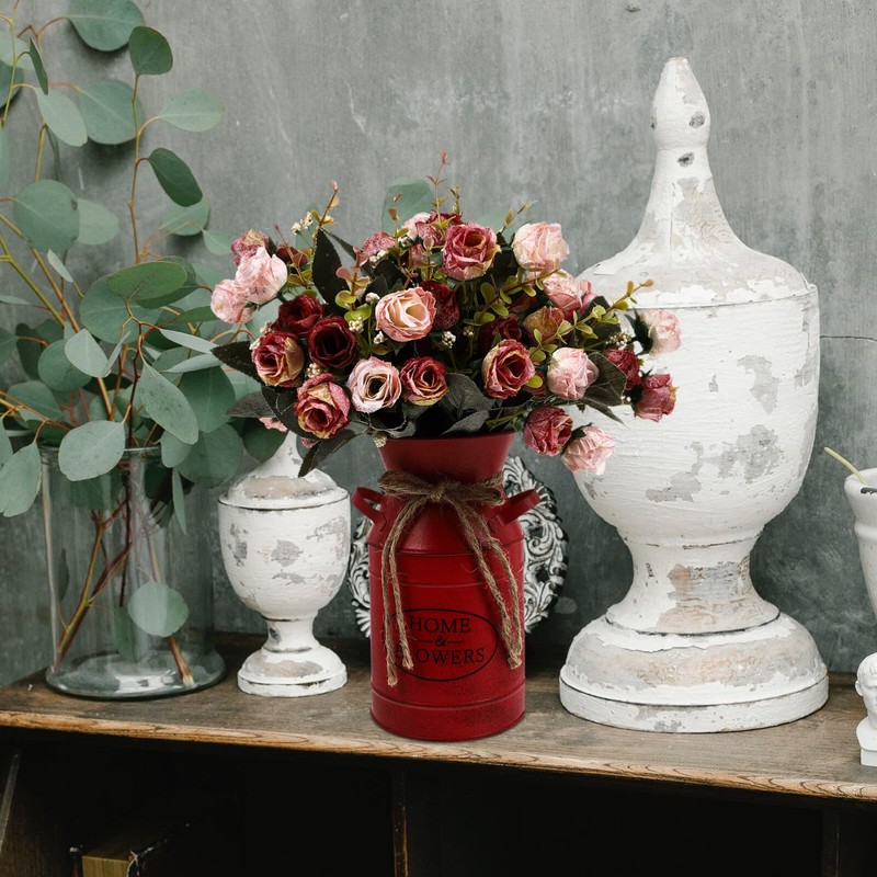 Veemoon rustic milk can decor shabby chic vase farmhouse vase decorative metal jug pitcher vase for wedding home living room bathroom dining table desk office decor red bucket red flower vase