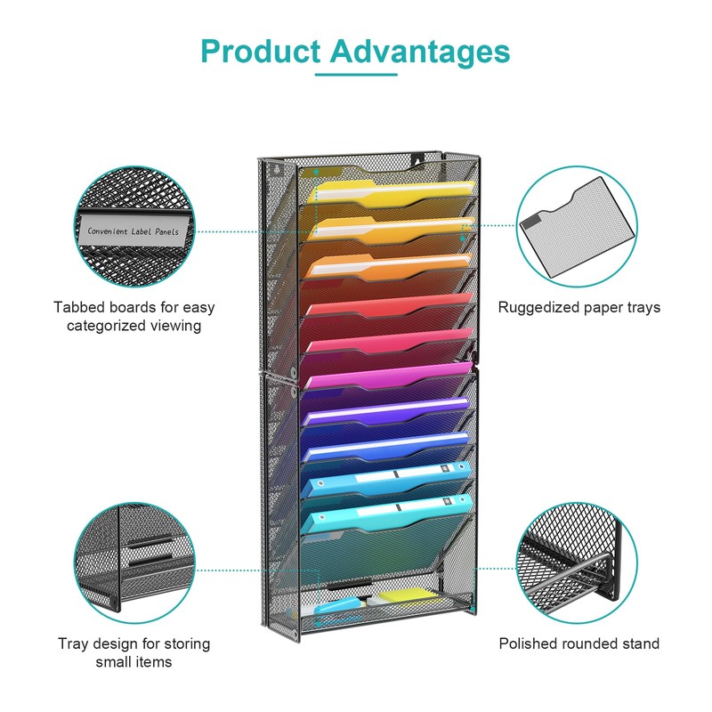 - EXCELLENT OFFICE ORGANIZATION: Widened mesh surface prevents items from falling. In the digital age, paper is still in use, wall organizers help you solve the problem of messy storage.