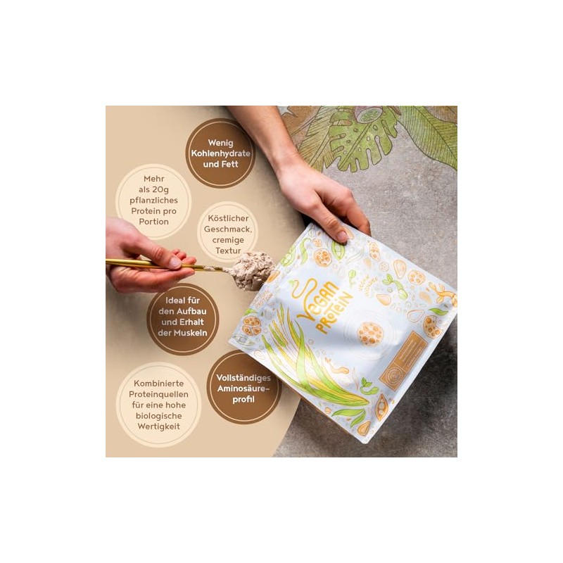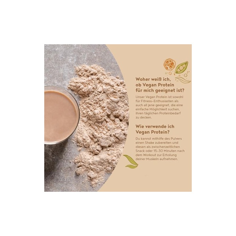 - üç™ HOHER PROTEINGEHALT: Unser vegan Protein Pulver bietet ein vollst√§ndiges BCAA-Aminos√§ureprofil und enth√§lt 21g Protein pro 30g Portion. Es hat einen k√∂stlich cremigen Keksteig-Geschmack, ideal f√ºr den perfekten Protein Shake.