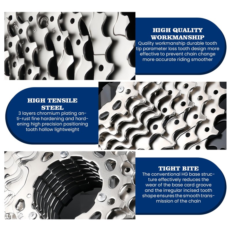 - TOOTH STRUCTURE: Bike cassette adopts a tooth structure to prevent the chain from falling when stepping back