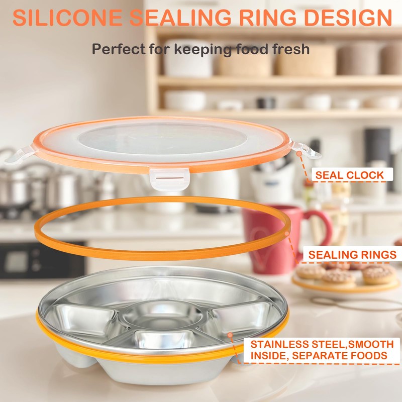 Veggie Tray with Lid, Divided Serving Tray with Lid, Stainless Steel Snackle ...