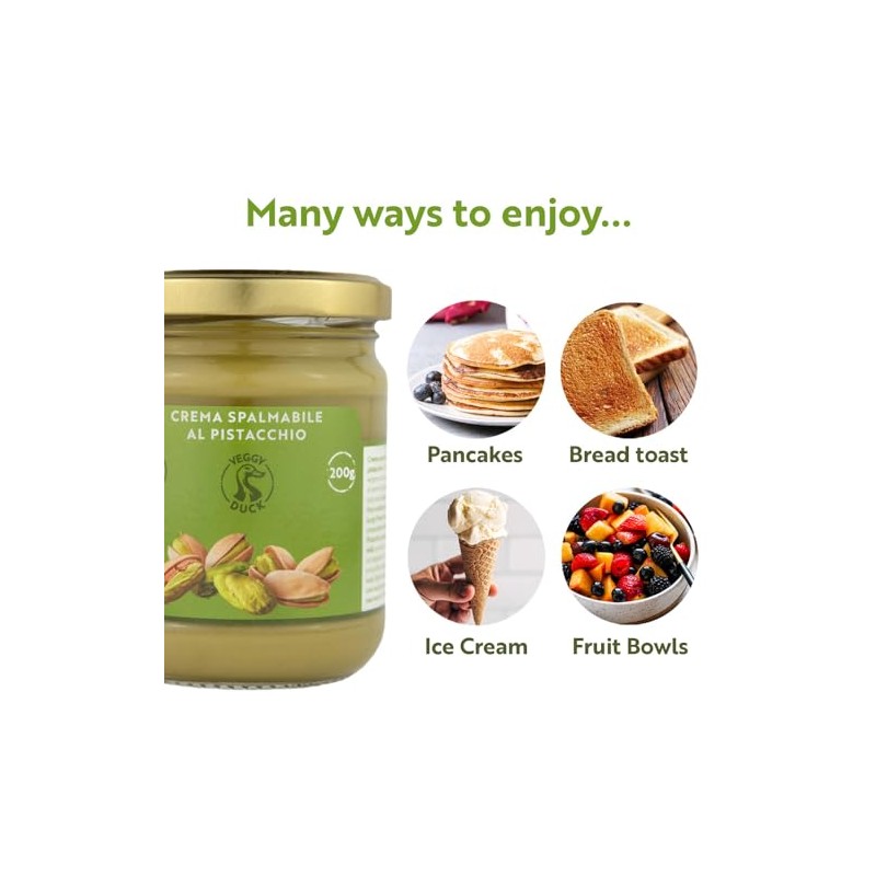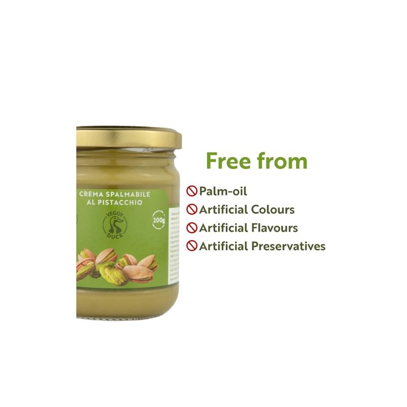Veggy Duck Veggy Duck - Sweet Spreadable Pistachio Cream (200g) | With 45% Mediterranean Pistachios | Italian Artisan Food Gourmet | Suitable for Breakfasts & Desserts