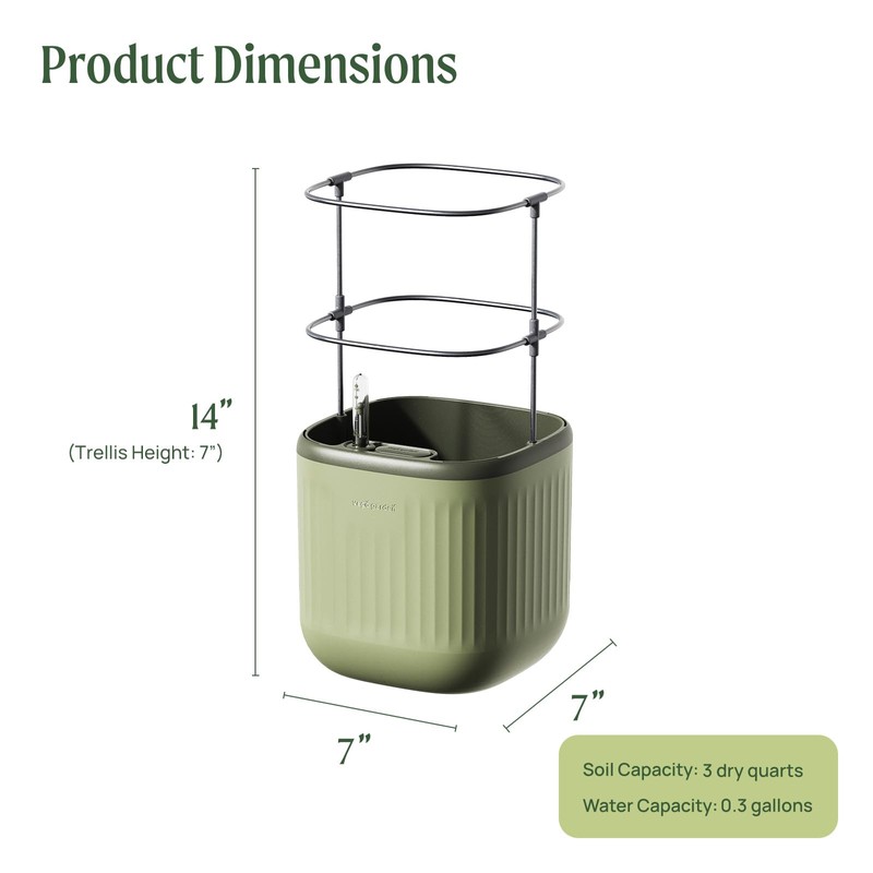 Vego garden Vego Garden Mini Planter Indoor Pots with Trellis Self-Watering Herb Countertop Planter for Climbing Vegetables Flowers Mint Plants Cage- Sage Green