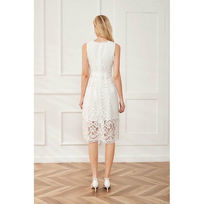 VEIISAR Women's Sleeveless Round Neck Scalloped Prom Lace Cocktail Party Dress White XL