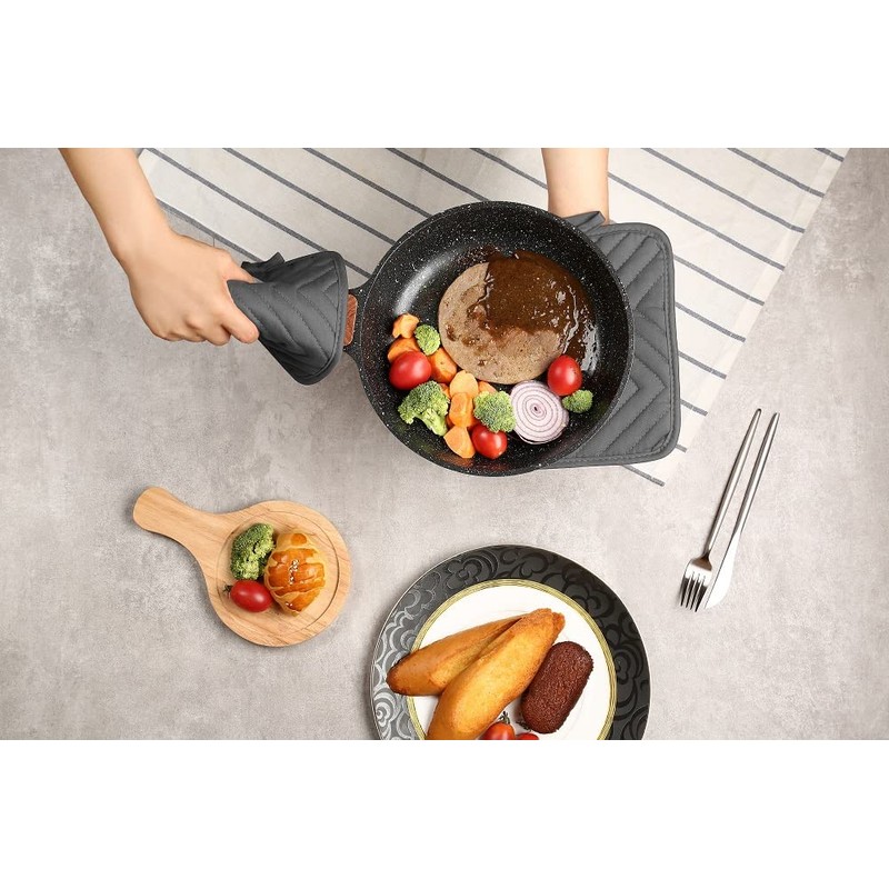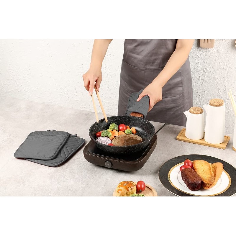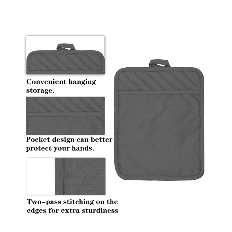VEIKERY - Soporte para ollas de horno con bolsillo de algodón, resistente al calor, para cocina, guantes de horno, cuadrados, 7 x 9 pulgadas, juego de 5 unidades (gris)