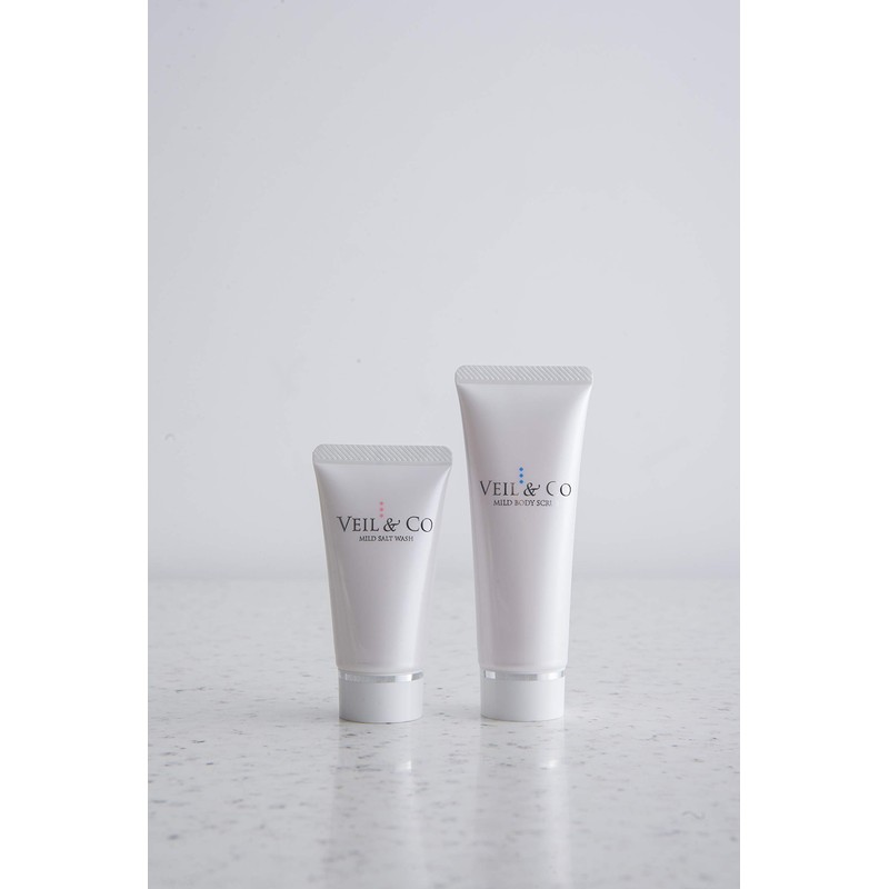 - VEIL & Co Trial Set: Introducing a trial size of mild salt wash (facial cleansing) and mild body scrubs (for full body) Take care of your travel or gym