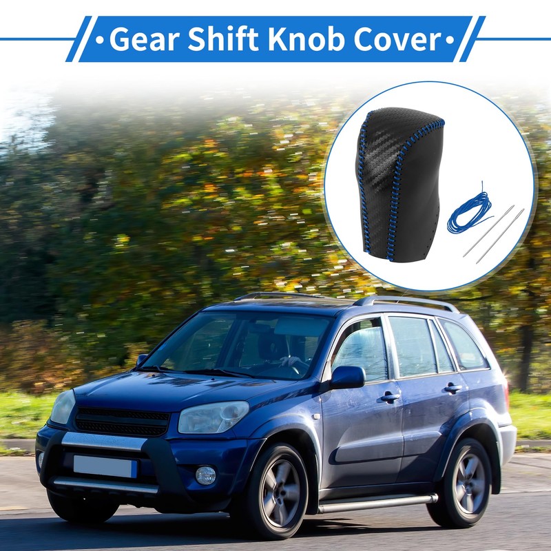 VekAuto Anti-Slip Gear Shift Knob Cover Car Stick Shifting Handle Protector for Toyota RAV4 2013-2016 Carbon Fiber Pattern Black Black Blue Microfiber Leather