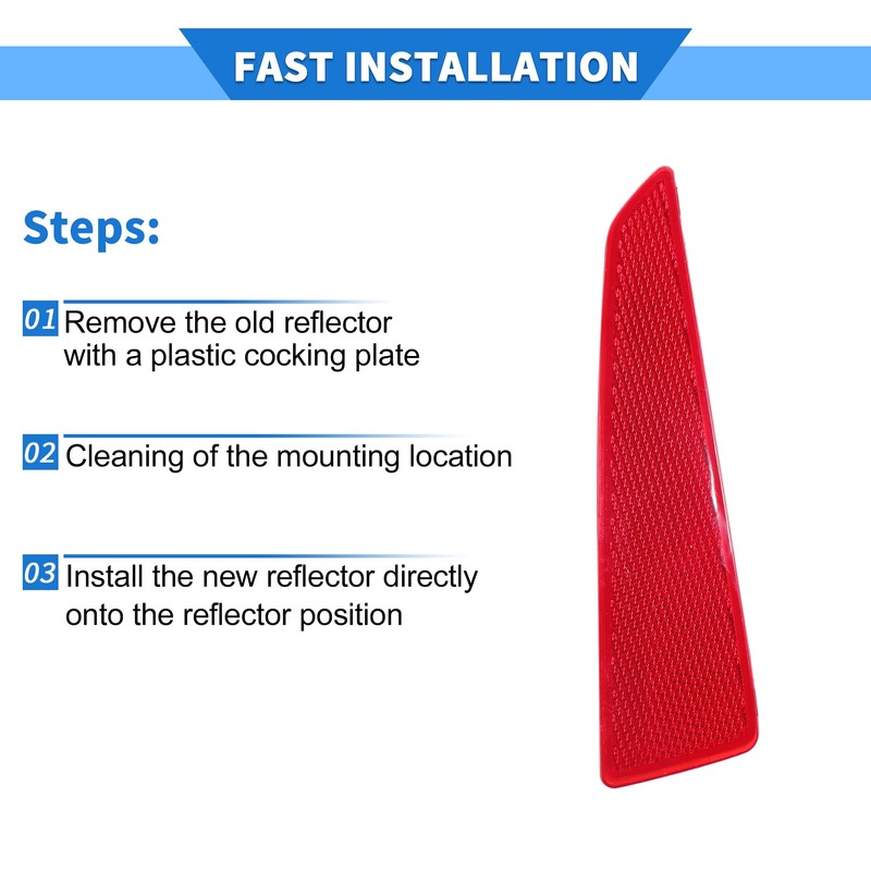 - Easy Installation - 1. Remove the old reflector with a plastic cocking plate, 2. Cleaning of the mounting location,3. Install the new reflector directly onto the reflector position.