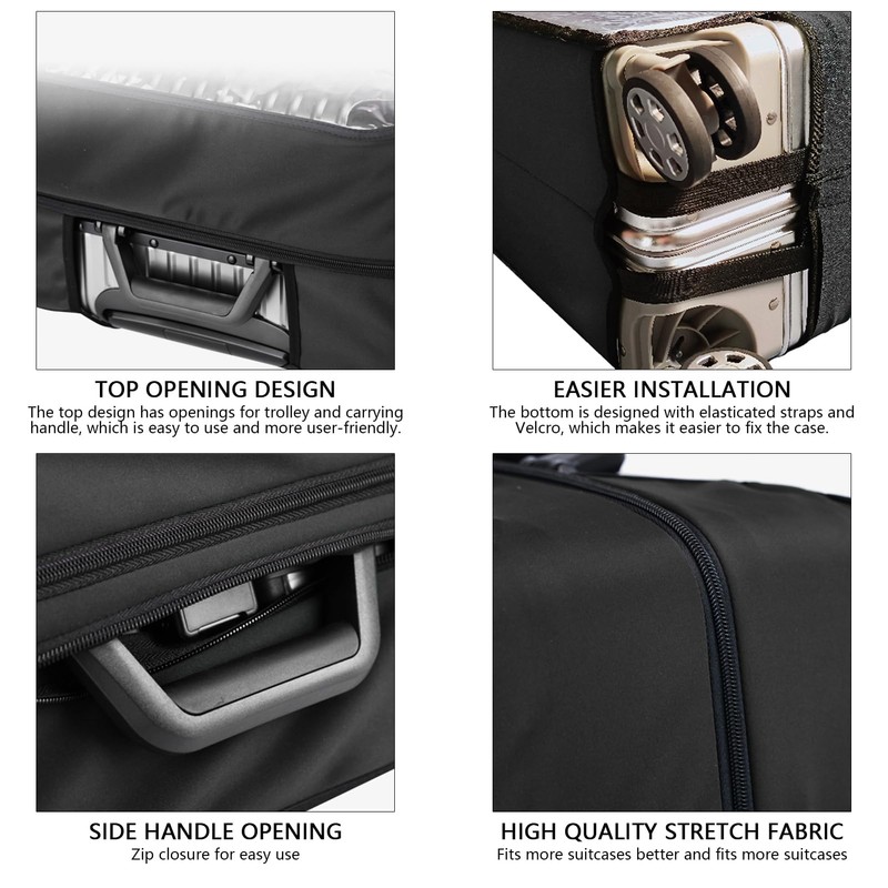 - [Opens without disassembly]: This luggage protector is equipped with a zipper, which makes it easy to install and remove. It also has two openings on the top and an empty carry handle on the side, which not only makes it easier to pull and carry, but also to open the case without having to remove the protective cover.
