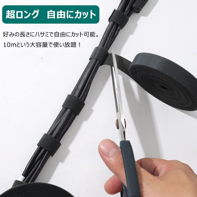 - Super Long Freely Cut: With a large capacity of 32.8 ft (10 m), you can use it as you like. Can be cut freely with scissors to fit the length you need. Hook and loop design, very easy to install and remove