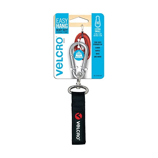 VELCRO Brand VEL-30196-USA Easy Hang Strap with Carabiner Clip Attach Water Bottles and Accessories to Bikes, Bags and more. Organization for Garden, Shed, RV. Extra Small-1Pk, Black