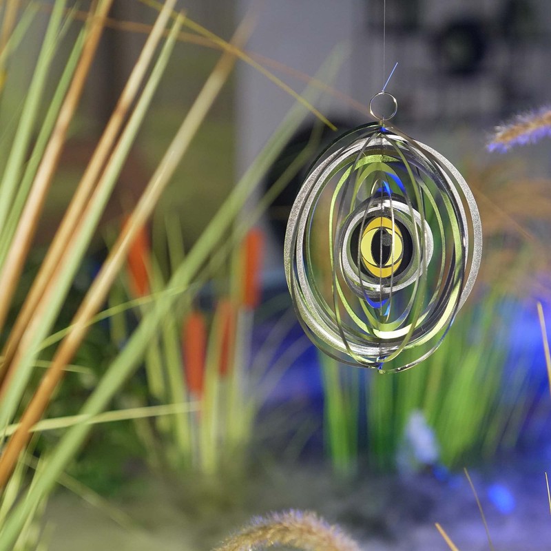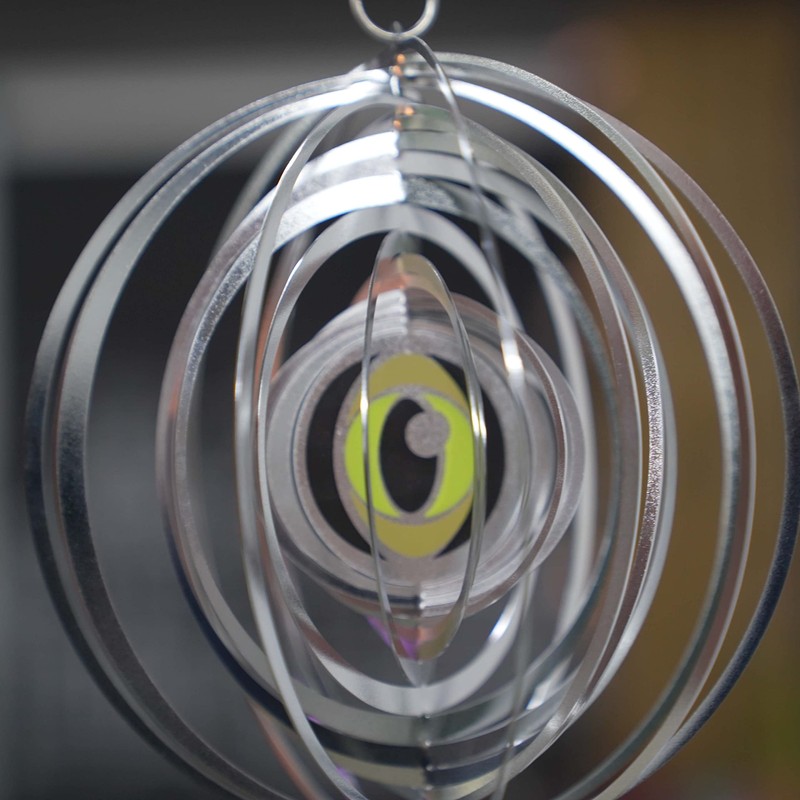 - Protection for pond fish: Spinner wind chime with bird of prey eye as a deterrent effect against intruders
