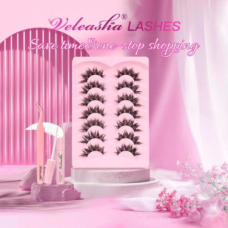 Veleasha Lashes Kit Manga Lashes Soft Eyelashes Wispy Eye Lash DIY Lash Crisscross with Eyelash Glue & Tweezers Multiple Wear Ways Soft Cotton Band 100% Handmade 7 Pairs Pack (Mermaid Kit)