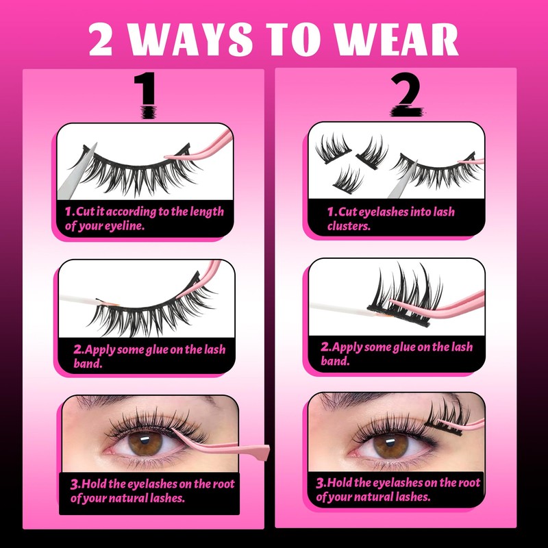 - Flexible Experience & Diverse Styles:This eyelashes offers two wearing methods. You can wear them as a strip lashes, which allows you to complete your makeup quickly and easily. With just a few steps, you can have charming eyes. Or you can cut them into sections and use them as lash clusters. In this way, you can freely adjust according to your eye shape and makeup to create a variety of eye effects. The multiple wearing methods provide you with different experiences.