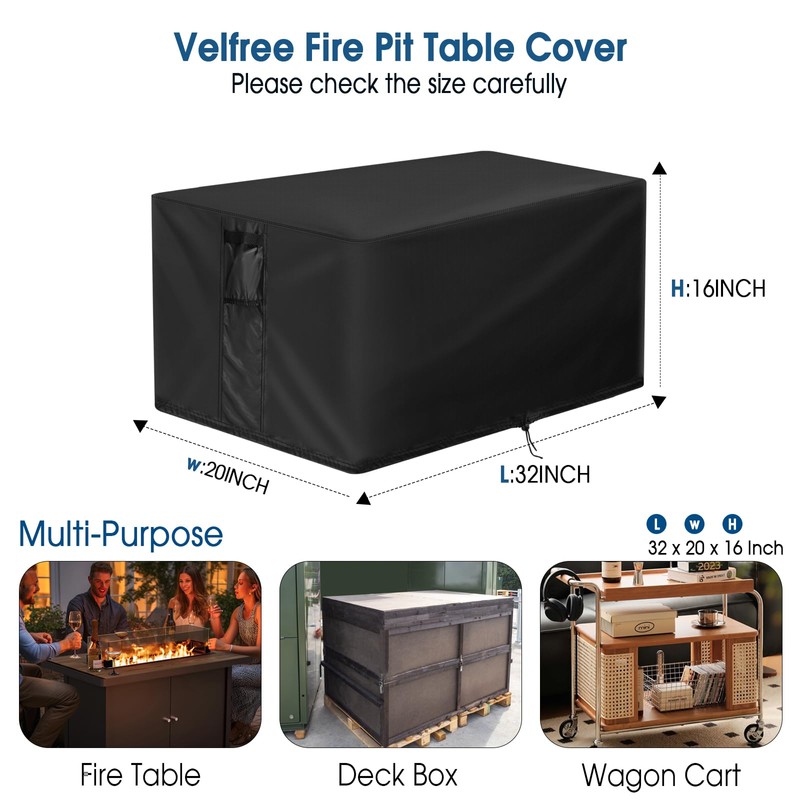 • Size: 32 x 20 x 16 inch, suitable for 32 x 20 inch rectangle fire pit table, Please measure your fire pit before purchasing