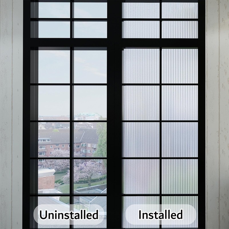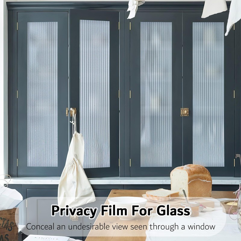 - REEDED GLASS SIMULATION - An excellent way to upgrade normal glass into reeded glass look at a fraction of the cost. Not only does the reeded glass film add an attractive design for an updated look but it also offers privacy protection.