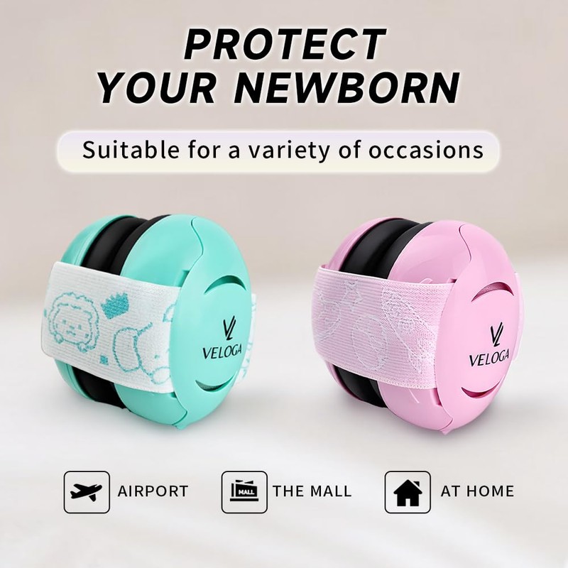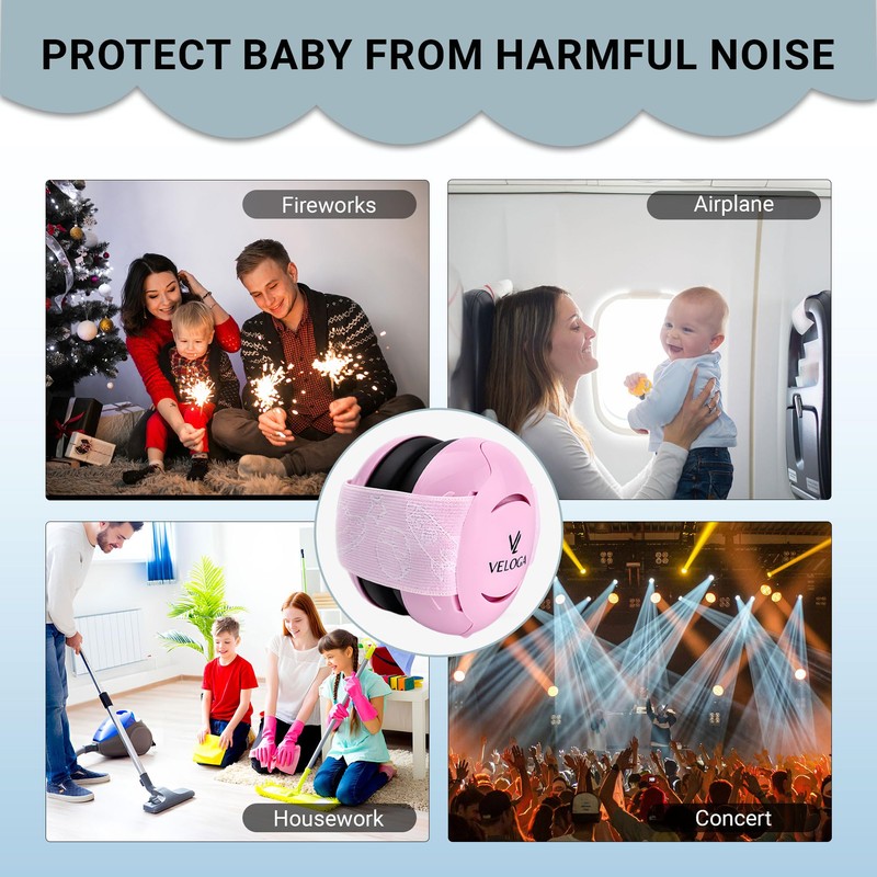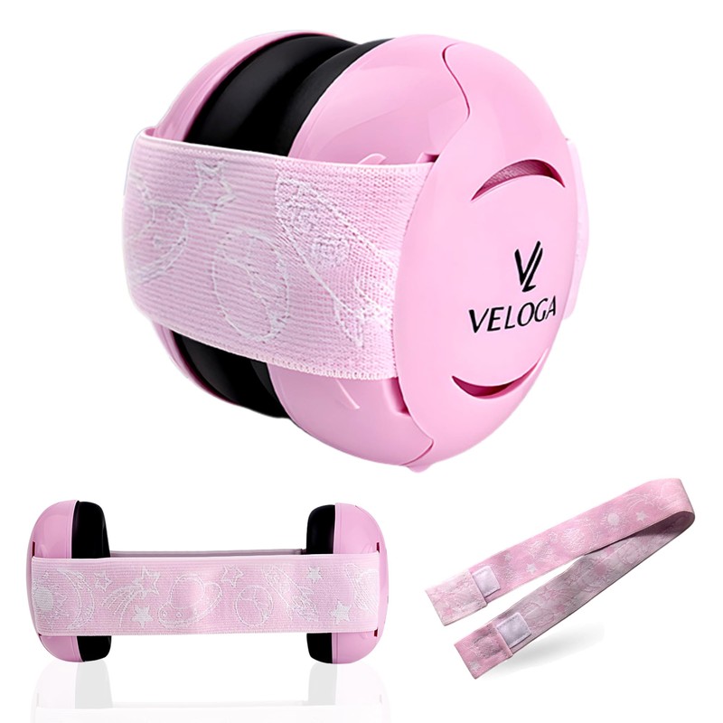 VELOGA Baby Ear Defenders Noise Protection (0-36 Months) CE & UKCA Certified Noise Cancelling Ear Defender, Adjustable & Comfortable Baby Ear Muffs Protection for Sleep, Travel & Loud Events (Pink)