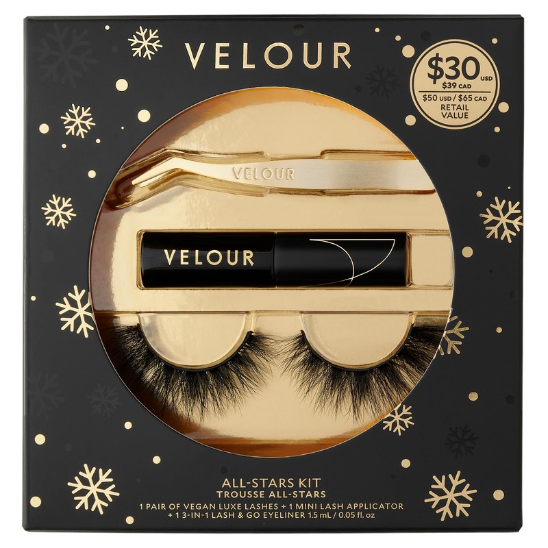 - LIMITED-EDITION FALSE LASH KIT - Three All-Star Velour products in one false eyelash gift set. This limited-edition kit has all you need to perfect your holiday glam.