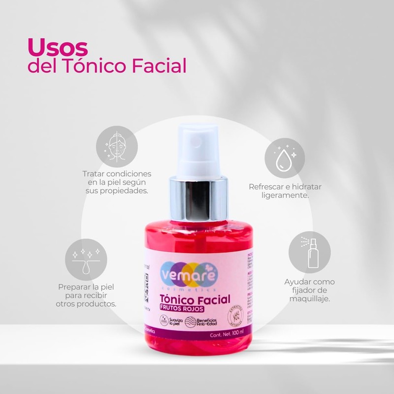 Vemare Cosmetics Tónico Facial Frutos Rojos Nutritivo Y Fresco 100 ml