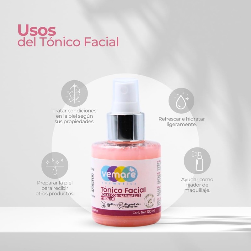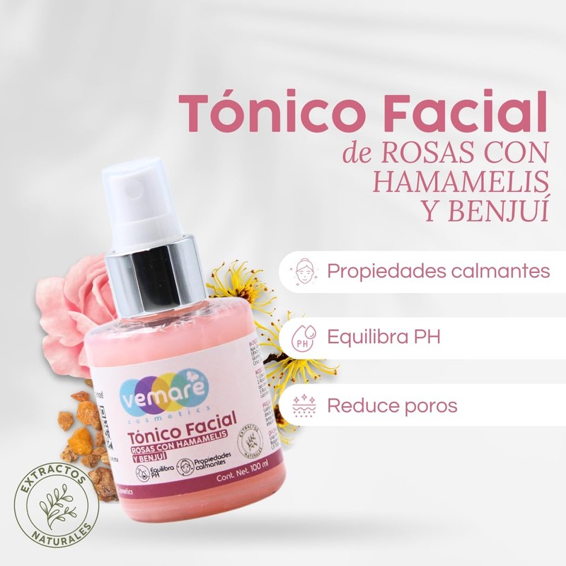 Vemare Cosmetics Tónico Facial Rosas Con Hamamelis Y Benjuí 100 ml