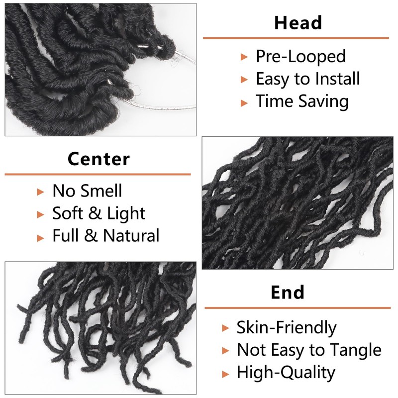 - Advantages : Faux locs crochet hair,Soft and breathable, naturally plump, non knotted, odorless, long-lasting use