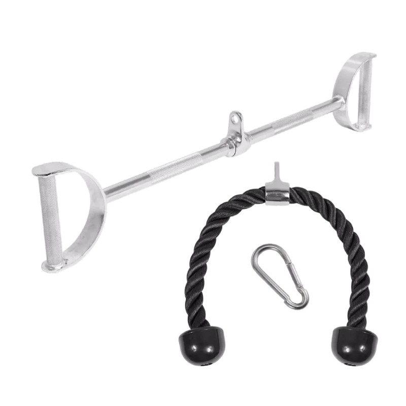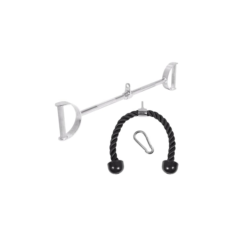 - For Home Gym Cable Attachments: COMBO Flat LAT Bar Tricep Rope Black 2PC
