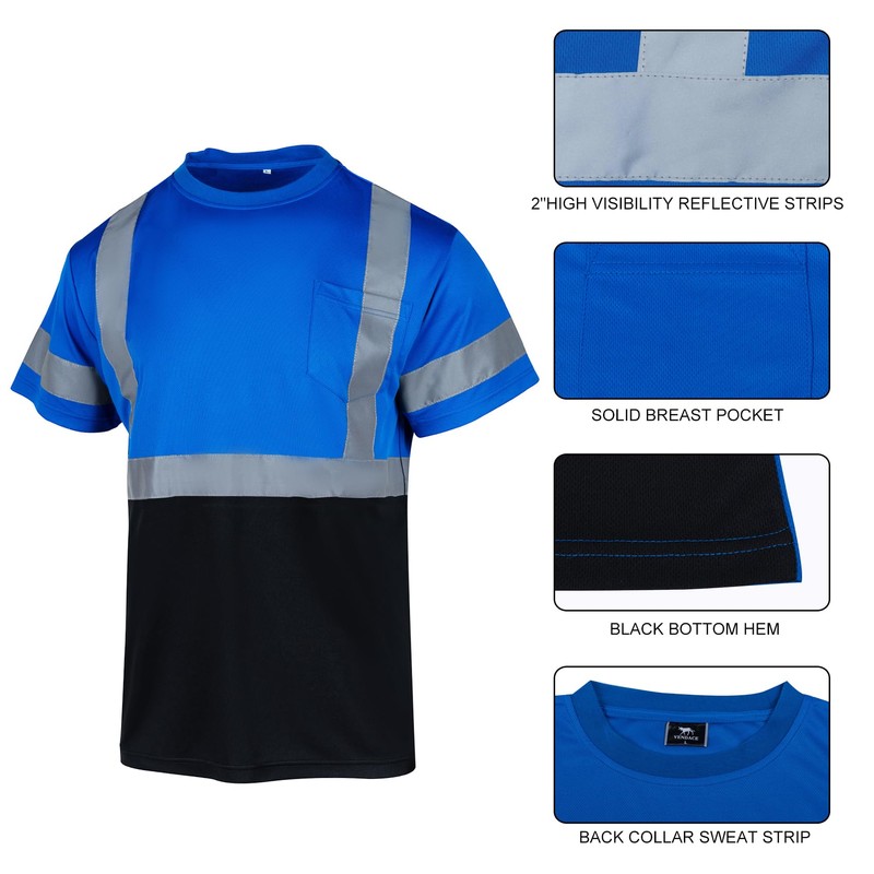 VENDACE Hi Vis Reflective Safety Shirts for Men ANSI Class 1 High Visibility Construction Work T Shirt(Blue,M)
