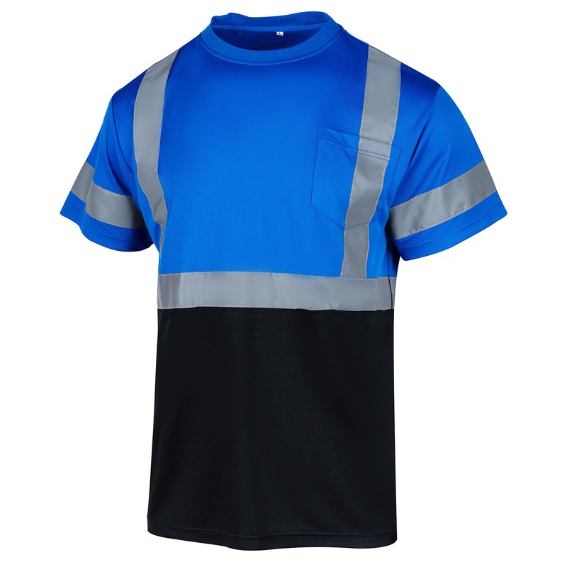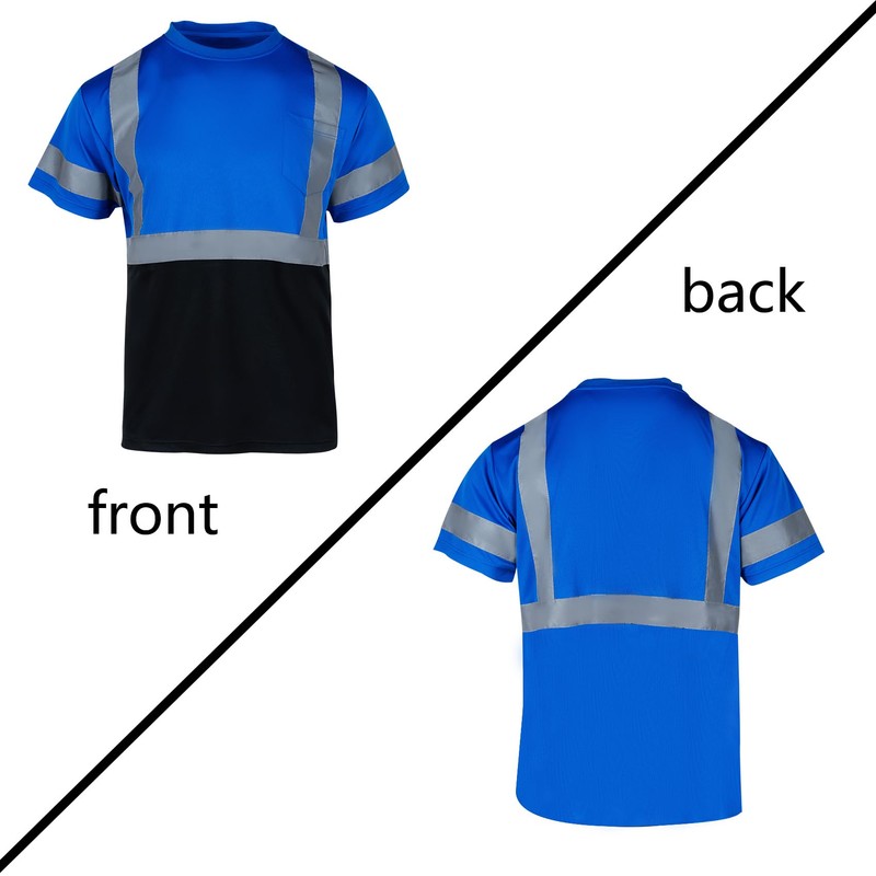 • HIGH VISIBILITY:Safety t shirt short sleeve in Lime Yellow,Neon Orange and black.Black bottoms half for enhanced color contrast and stain protection. There are one horizontal reflective strips around the waist and one reflective strips for each sleeve. That makes you be 360° visible when you are working or doing sports in dark. It will make you stand out in the crowds.A pocket on left comes handy when needed.