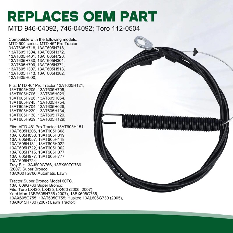 Venseri 42 Deck Engagement Cable for Toro & MTD Lawn Mowers