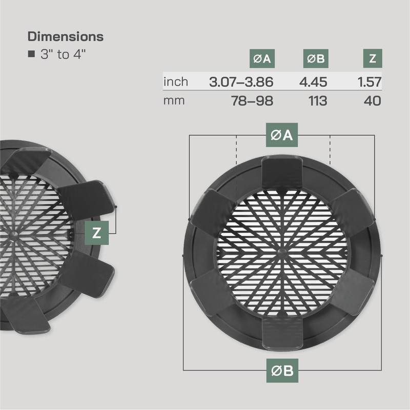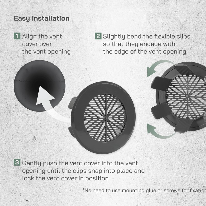 Vent Systems 3'' to 4'' Inch Pack of 2 - Graphite Gray - Soffit Vent Cover - Round Air Vent Guard - Grill Cover - Built-in Protective Grid - HVAC Vent for Bathroom, Home Office, Kitchen - Flexible Fit