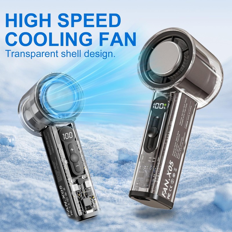 - 【REFRIGERACIÓN DE ALTA VELOCIDAD】: Mini Ventilador adopta turbocompresor, AI chip inteligente superconductor de refrigeración de hielo todavía, la velocidad del viento puede alcanzar hasta 10 metros por segundo. El potente ventilador de mano comprime y enfría rápidamente el aire caliente inhalado, convirtiéndolo en aire frío para soplar. Puede enfriarse rápidamente cuando hace calor. La carcasa de este turboventilador tiene un diseño totalmente transparente para una estética y frescura tecnológicas.