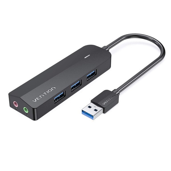 - Versatile connectivity: VENTION USB 3.0 Hub 3-Port USB Sound Card is a 2-in-1 external stereo audio adapter that allows you to connect multiple USB devices and enjoy high-quality audio through the 3.5mm jack.