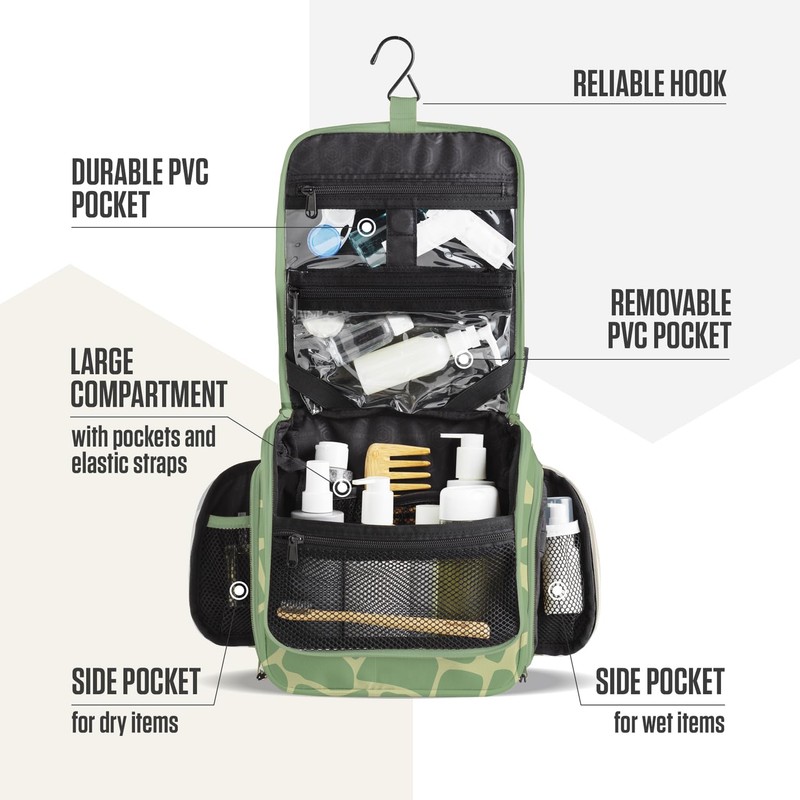 VENTURE 4TH Premium Hanging Travel Toiletry Bag for Women and Men - Mens Travel Bag Toiletry with Expandable Compartments and Detachable TSA Friendly Clear Pouch (Olive Giraffe)