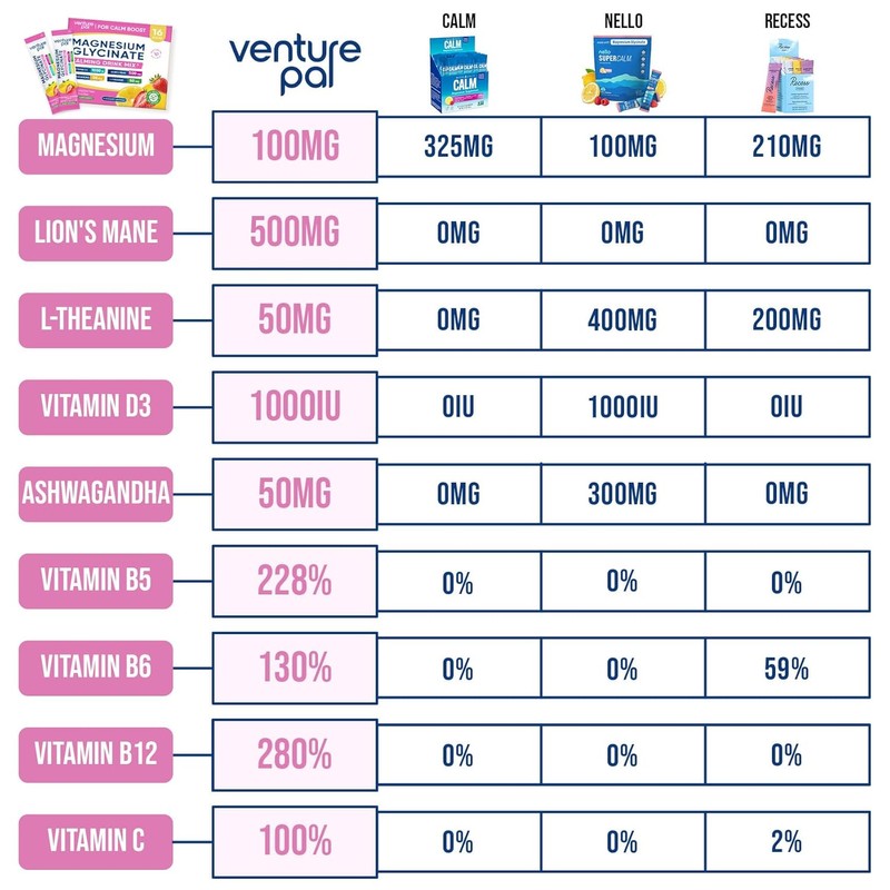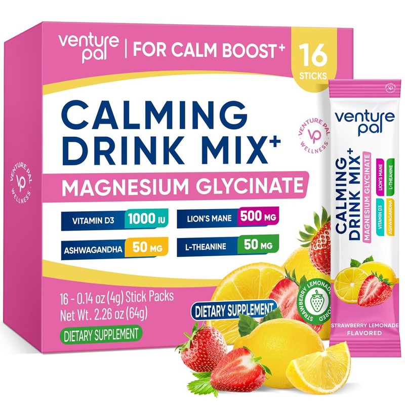 Venture Pal Magnesium Glycinate Powdered Drink Mix with Ashwagandha, Vitamin ...