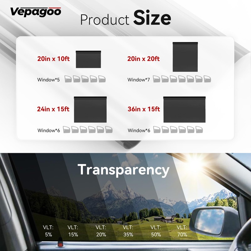 - HD Vision: Vepagoo car window tint does not affect the line of sight, anti-glare, and the driving process is safer; Protecting your eyes can reduce fatigue while ensuring good visibility and a more comfortable driving environment