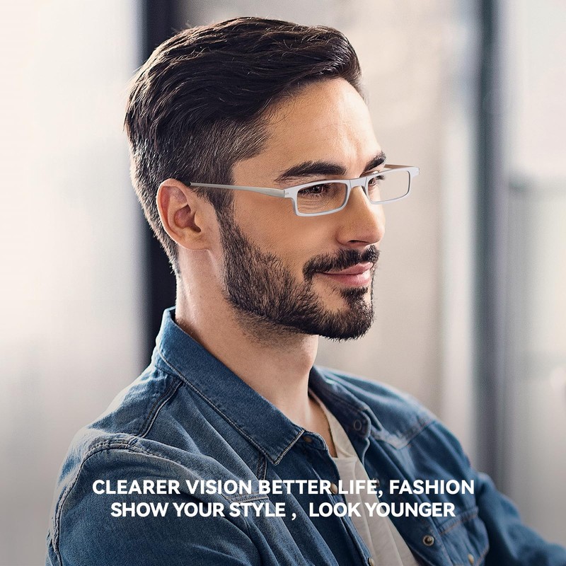 - Excellent Aluminum Material & Comfortable Silicone Protective Foot Cover - These mens reading glasses are made of high quality aluminum alloy material, which is extremely lightweight without losing its toughness and durability, gives you a comfortable wearing experience. Silicone protective foot cover, anti-slip and anti-sweat, comfortable to wear without pinching your face.
