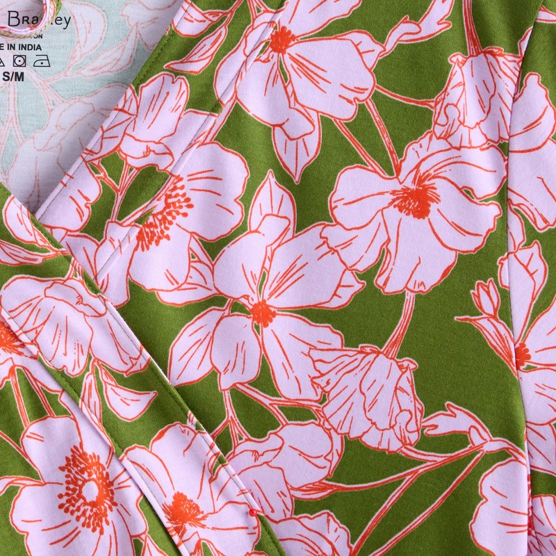 - DETAILS - This robe features a strechy, lightweight, printed pima cotton; patch pockets; waist tie closure; relaxed fit sleeves