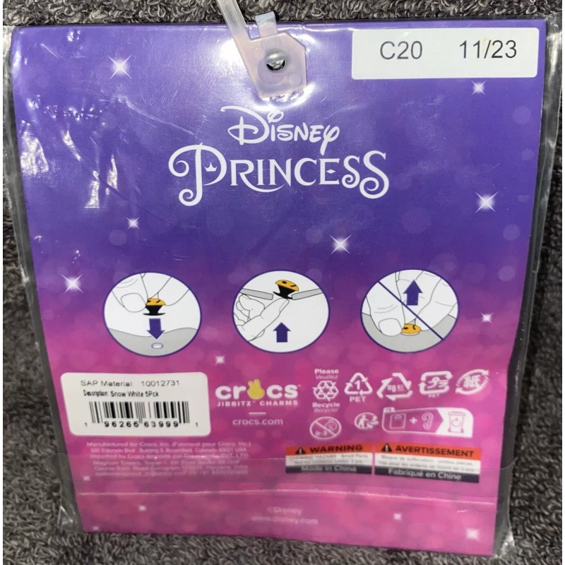 Add some extra magic to your Crocs with this adorable Vera Bradley Snow White Shoe Charm 5-Pack Set. The vibrant multicolor rubber charms are perfect for any Snow White fan and are completely waterproof. The charms feature the beloved Disney character Snow White