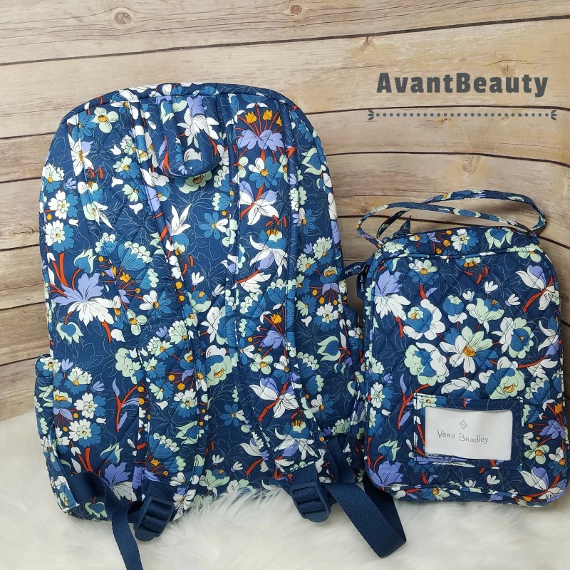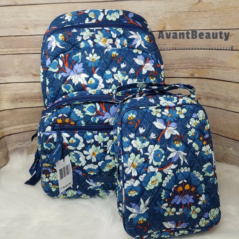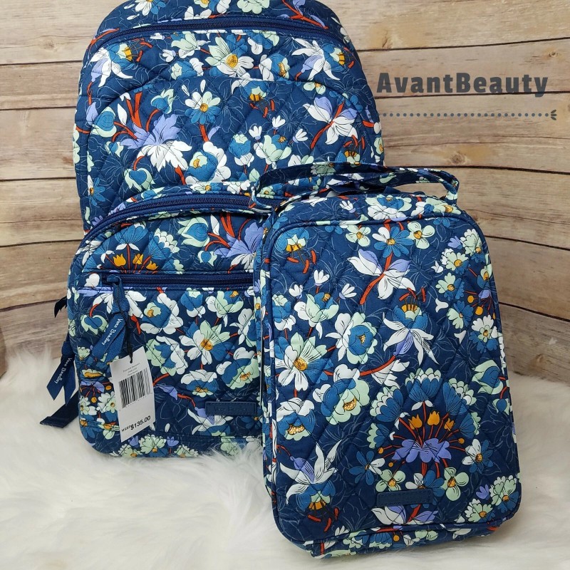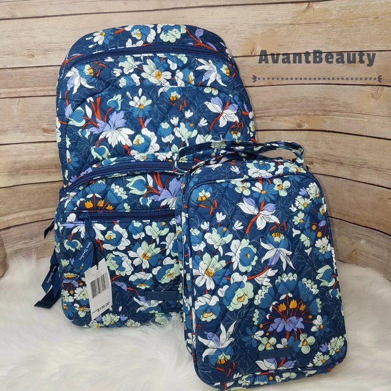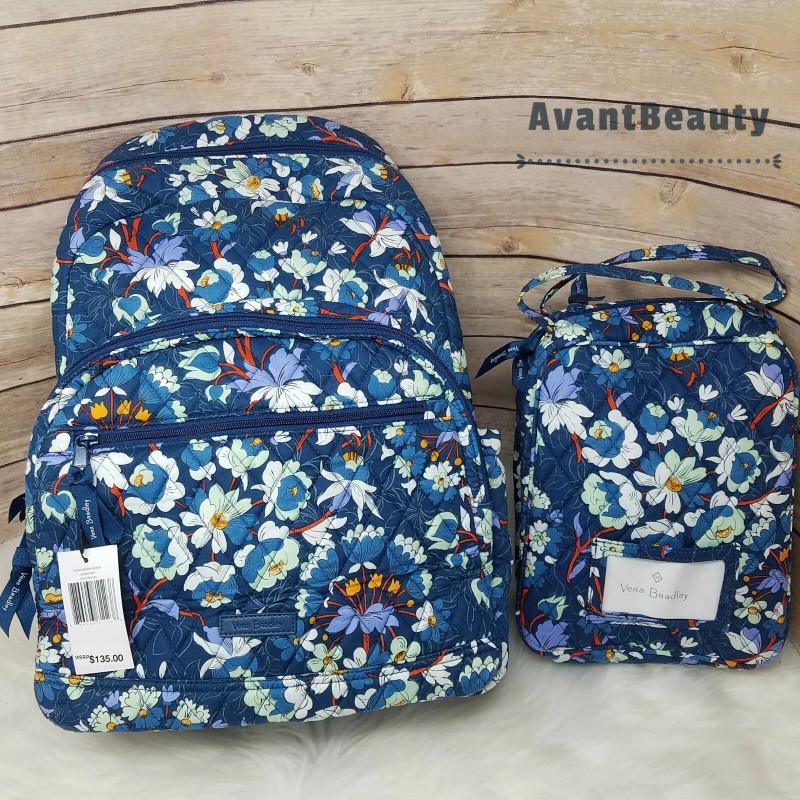 VERA BRADLEY Essential Backpack Bookbag Floral Blue Bursts Bag NWT New