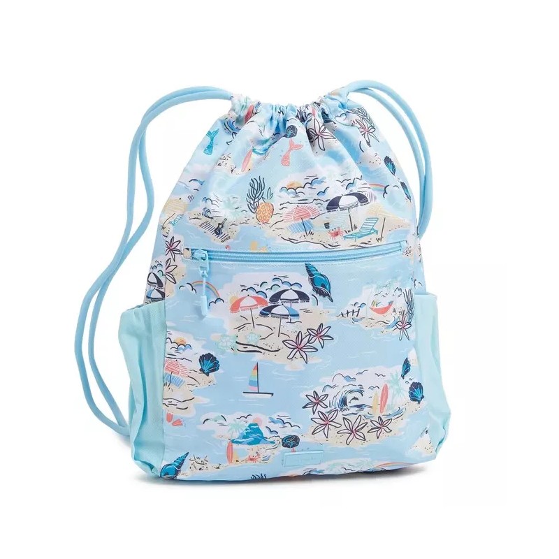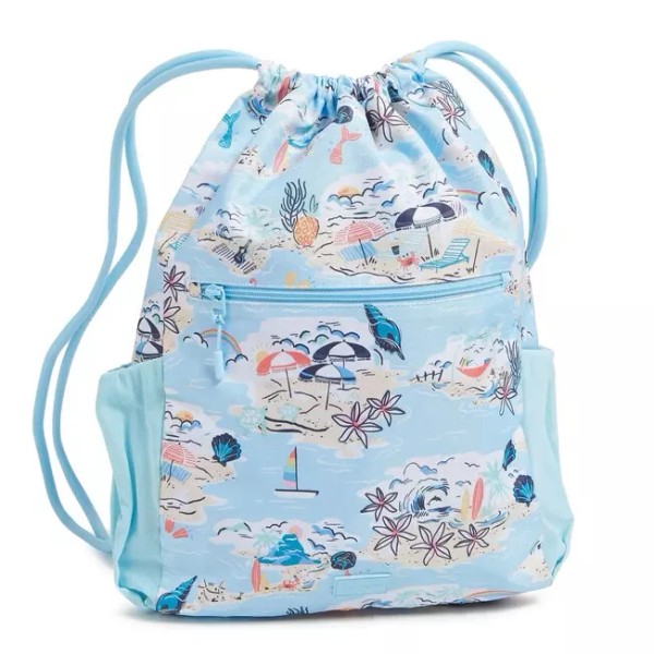 Vera Bradley Lighten Up Deluxe Drawstring Backpack Beach Treasures NWT