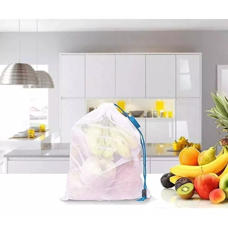 6 PIEZAS - Bolsas Ecológicas Veraly Reutilizables Malla Lavables Para Guardar Fruta Verduras Super