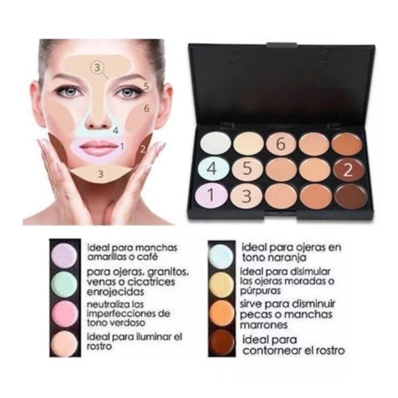 Corrector de 15 paletas a todo color, incluye colores brillantes y mate que combinan con cada aspecto