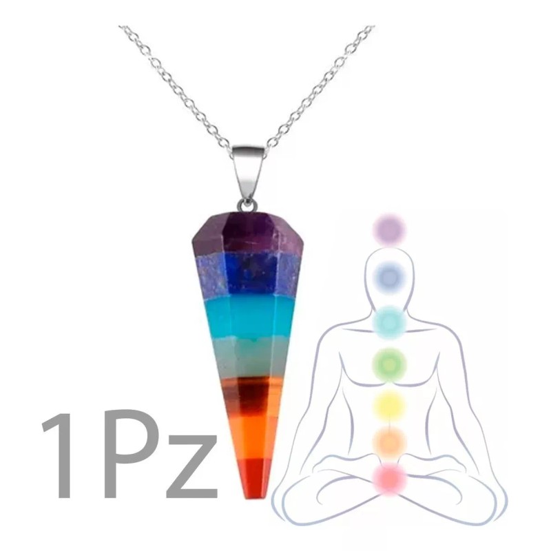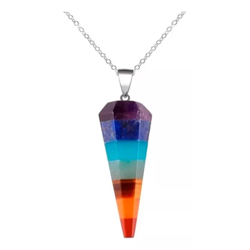 Veraly Pendulo Conico Cuarzo Natural Collar 7 Chakra Yoga Mandala F