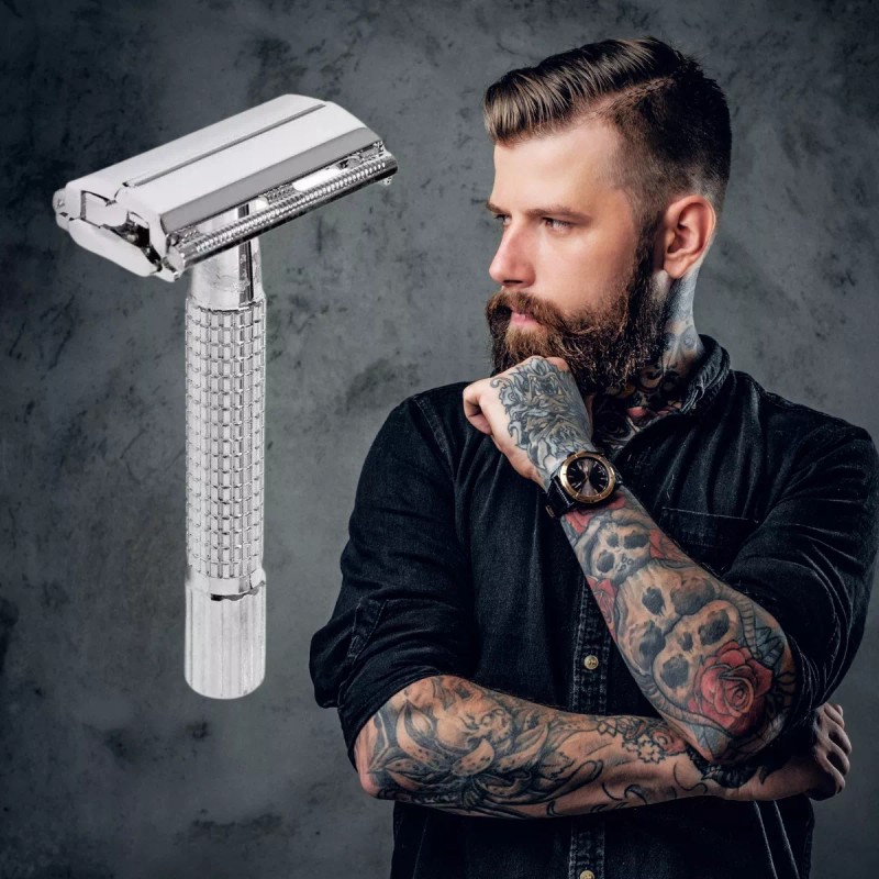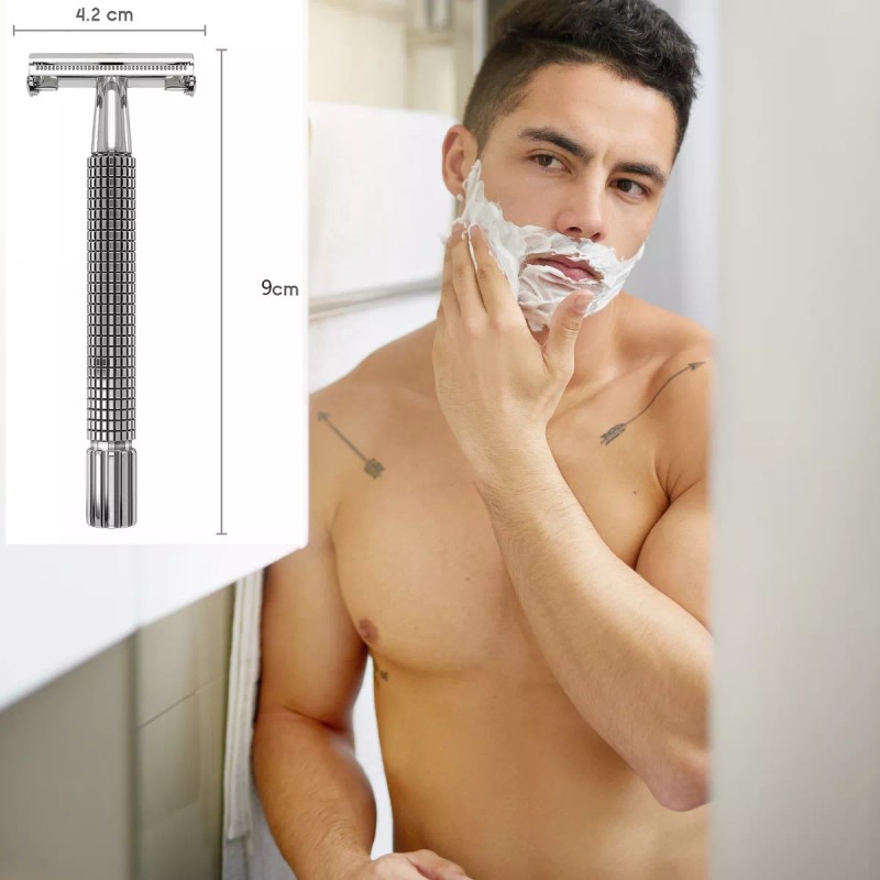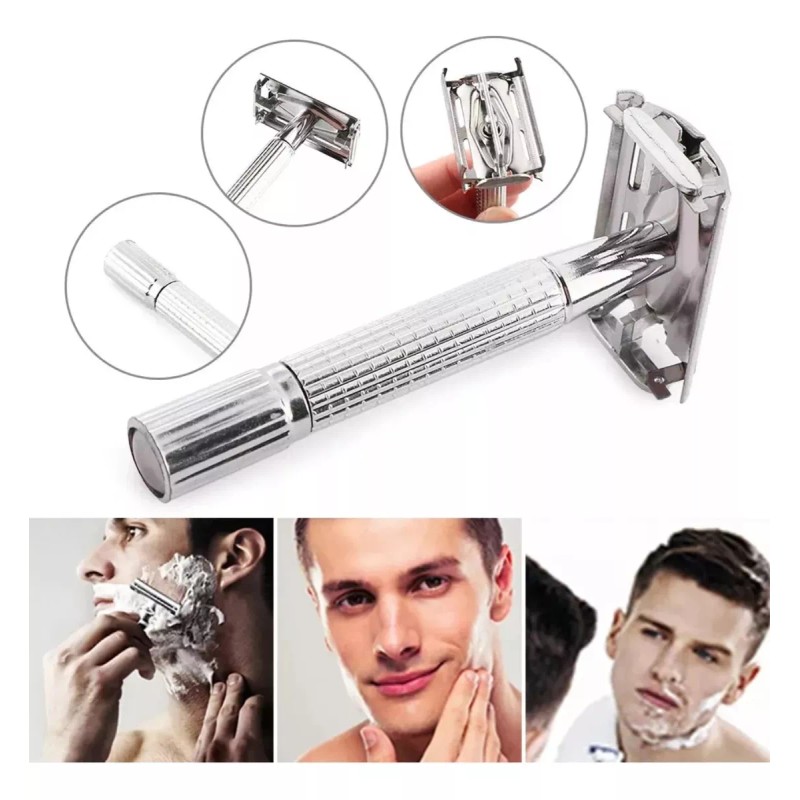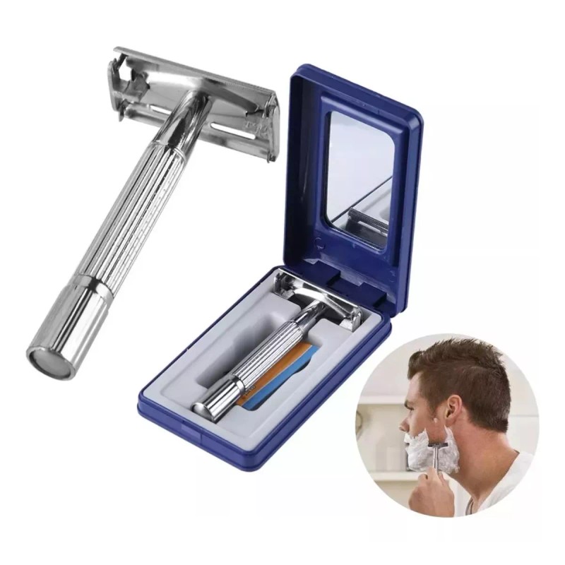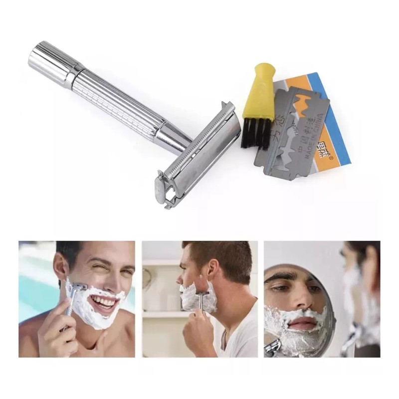 Rastrillo metalico Clasico/Antiguo que hace facil tu afeitada y con el sistema mariposa, permite reponer o retirar las navajas con gran facilidad sin necesidad de desarmar el rastrillo como otros que se desarman en piezas evitando asi accidentes.