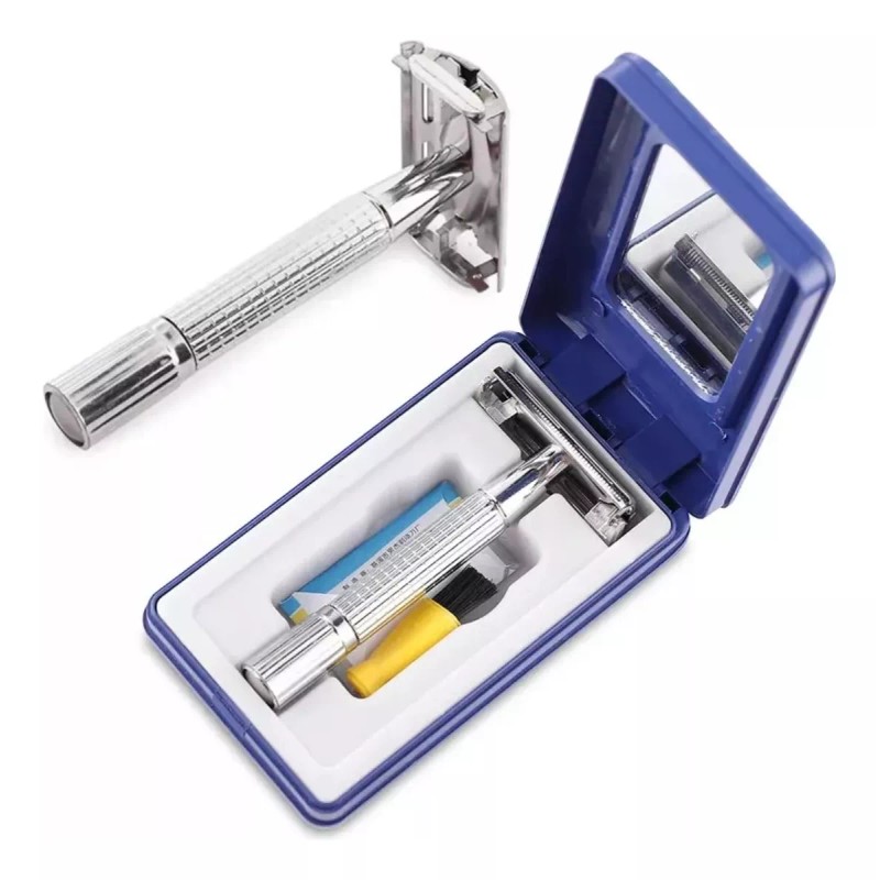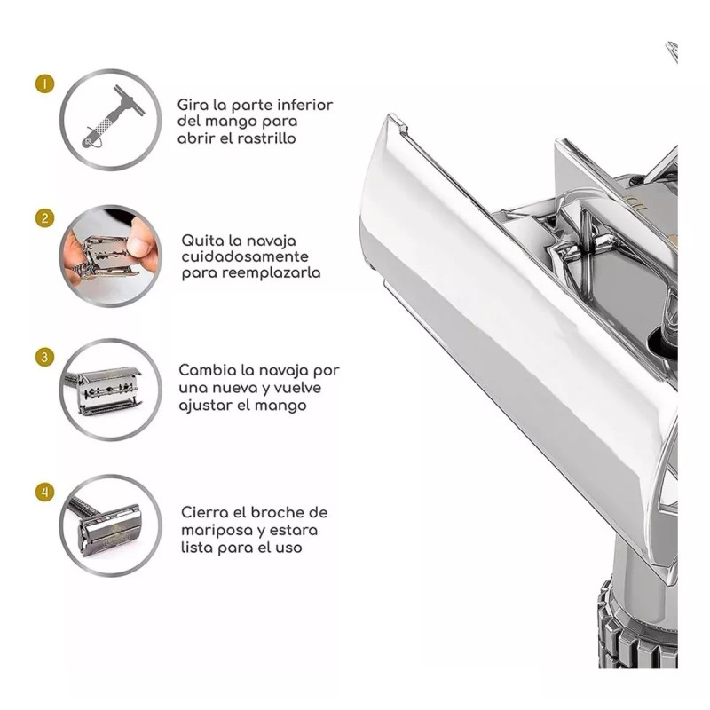 Rastrillo Clasico Apertura De Mariposa Acero Inoxidable + 5 cajitas de navaja