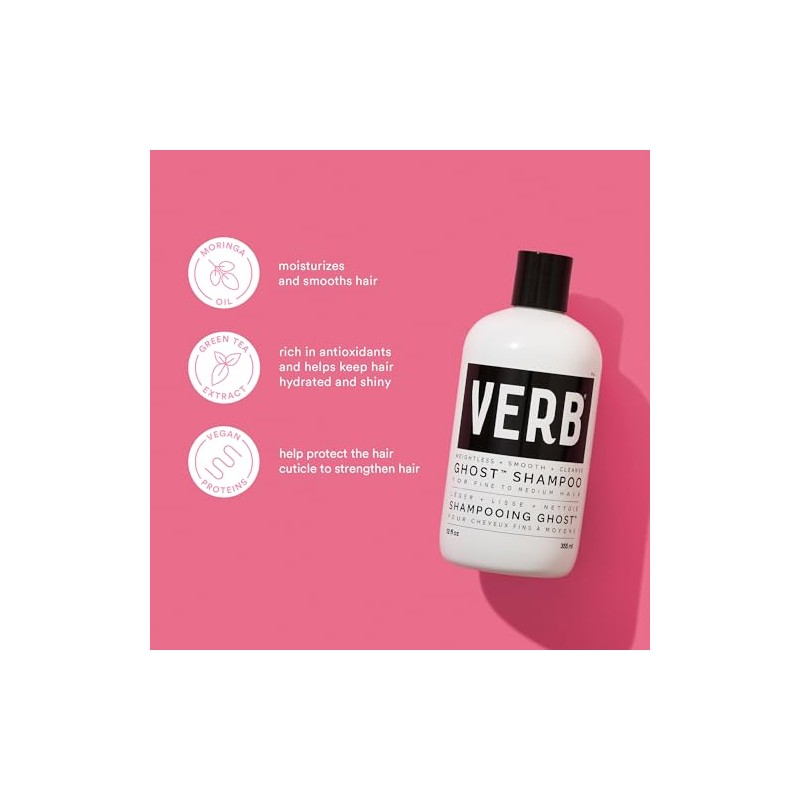 - GHOST SHAMPOO AND CONDITIONER: Infused with moringa oil, gently cleanses, hydrates, and detangles while smoothing frizz and boosting shine. Clinically proven to reduce frizz by 79%* for fine to medium hair. *Proven results when using the VERB Ghost Collection.