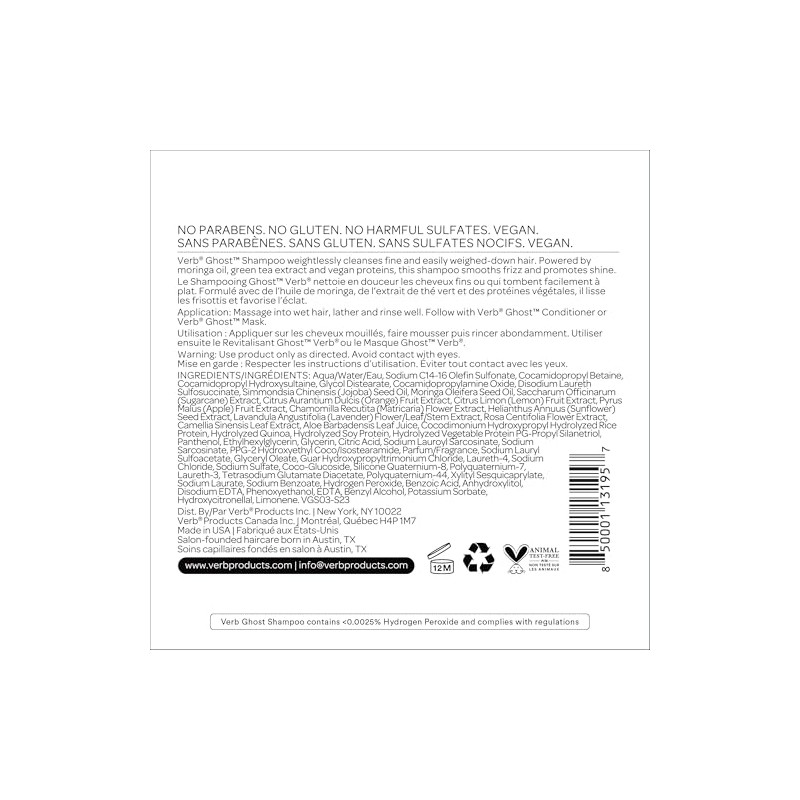 - GHOST HAIRCARE: This shampoo and conditioner set is part of Verb's Ghost collection for fine and easily weighted-down hair; Ghost hair products are suitable for use on all hair types