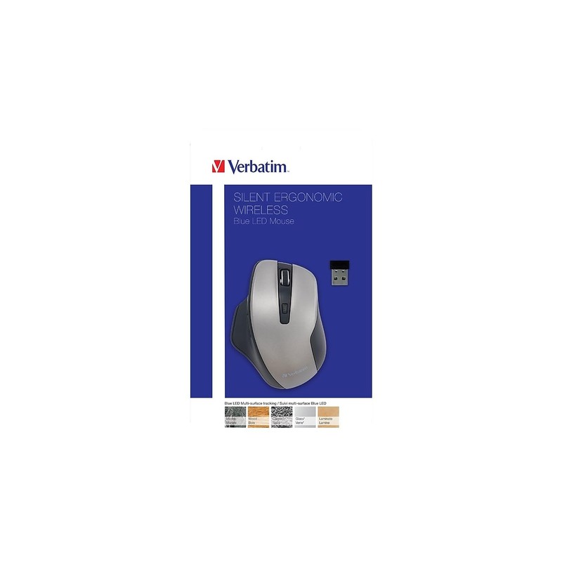 Verbatim Silent Ergonomic Wireless Blue LED Mouse - Graphite
