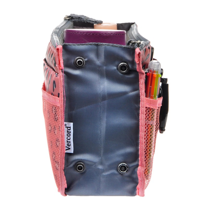 Vercord Purse Organizer Insert for Handbags Bag Organizers Inside Tote Pocketbook Women Nurse Nylon 13 Pockets Pink Leopard Large